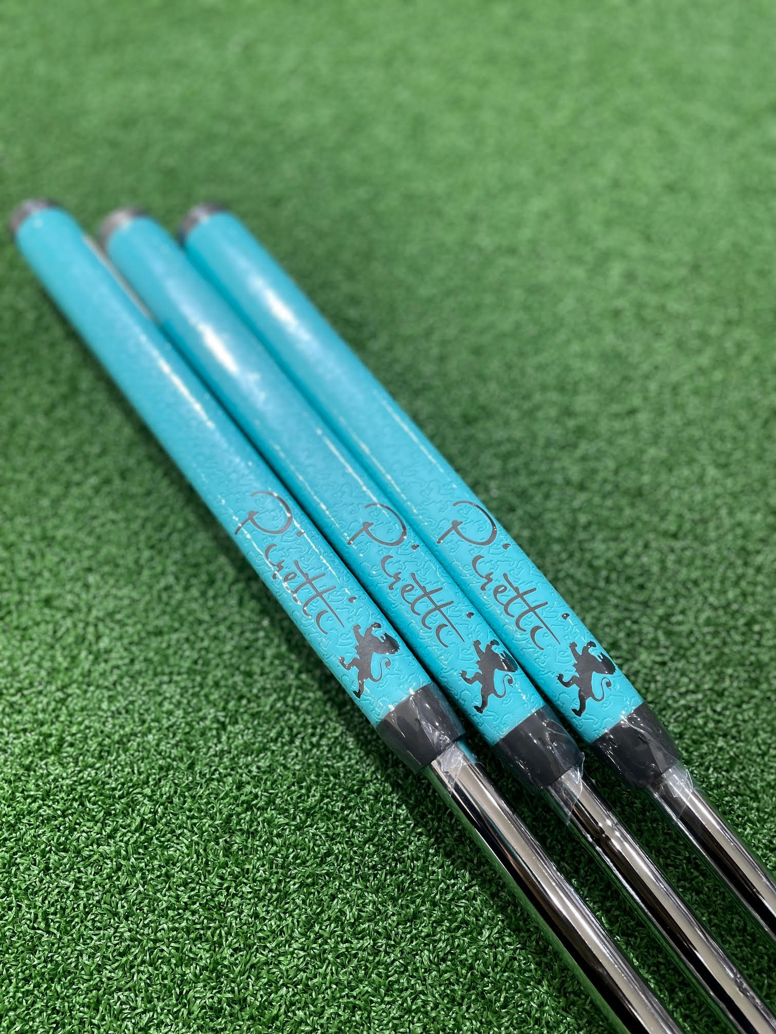ヘッドのポイントカラー、ヘッドカバー、グリップがターコイズブルーで統一されていてとても美しい逸品です。